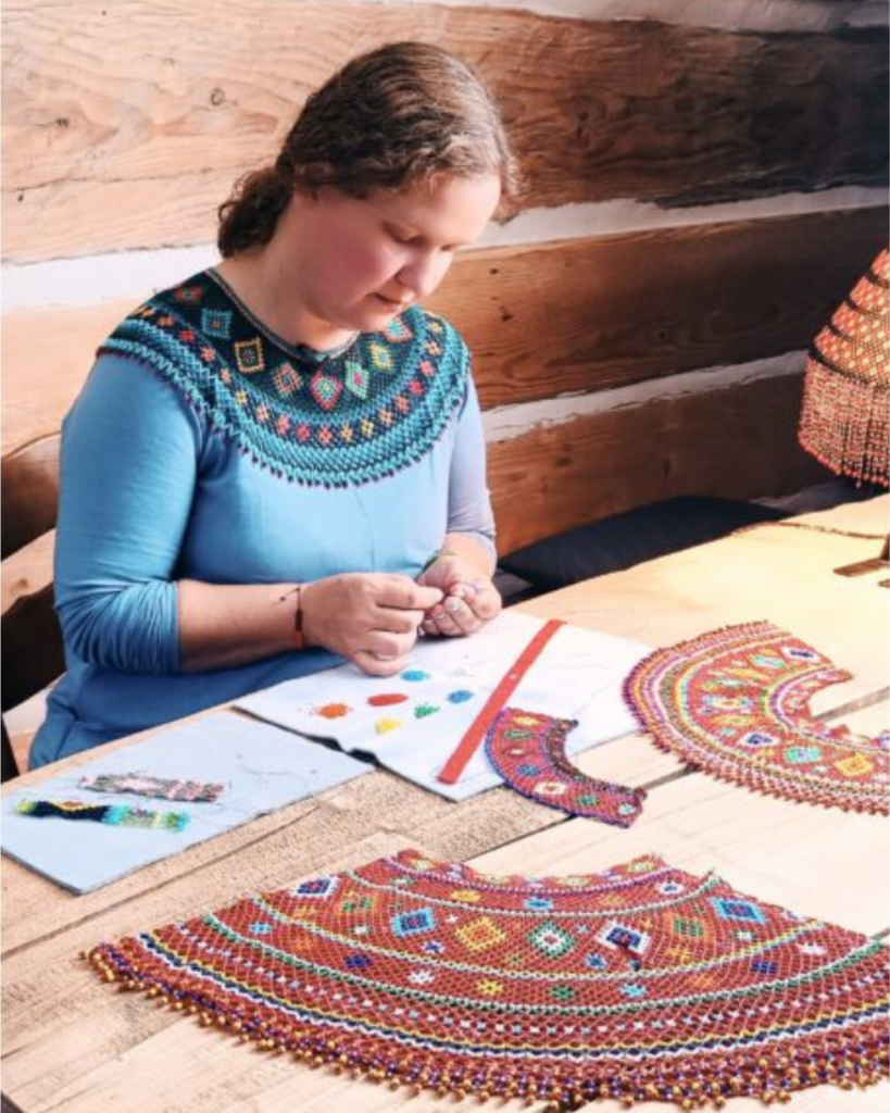 Od ponad dwudziestu lat tworzy tradycyjną karpacką biżuterię koralikową, przywracając do życia wzory z Łemkowszczyzny i Bojkowszczyzny. Jej prace łączą historyczne motywy z autorskimi kompozycjami inspirowanymi haftem krzyżykowym. Każdy obiekt powstaje ręcznie, z dbałością o rytm wzoru, kolor i znaczenie ornamentu, stając się współczesną interpretacją dawnego rzemiosła. Spod jej rąk wychodzą krywulki, gerdany, sylianki oraz koralikowe bransoletki.