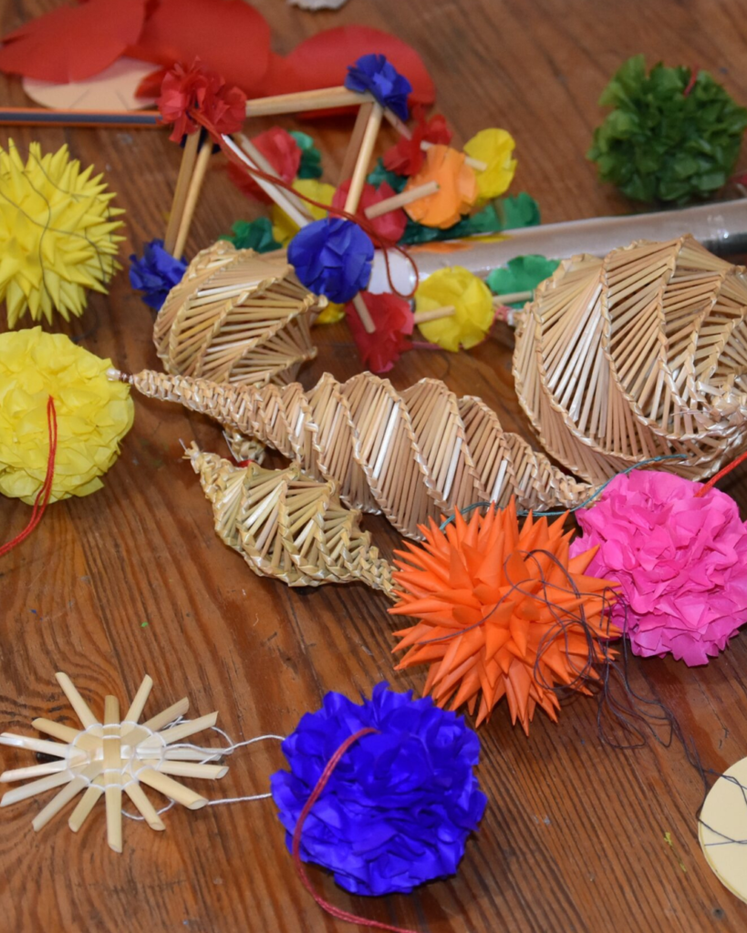ozdoby choinkowe z bibuły i słomy