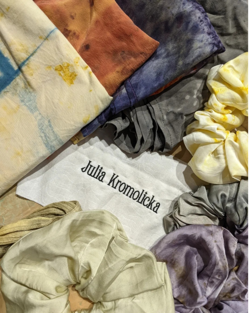 Julia Kromolicka – projektantka ubioru i tkanin, rzemieślniczka, kostiumografka i edukatorka. Tworzy w duchu mody odpowiedzialnej, łącząc tradycyjne techniki z eksperymentem i współczesną estetyką. Jej praktyka obejmuje zarówno naturalne barwienie, jak i projektowanie ubiorów, tworzenie tkanin, pracę z konstrukcją oraz rekonstrukcję istniejących obiektów. W swoich projektach szuka równowagi między rzemiosłem a artystyczną narracją – tworzy spójne, unikatowe obiekty, często o charakterze eksperymentalnym. Pracuje z instytucjami kultury, teatrami i organizacjami artystycznymi, a także prowadzi warsztaty z zakresu mody odpowiedzialnej, barwienia naturalnego i twórczych procesów.
